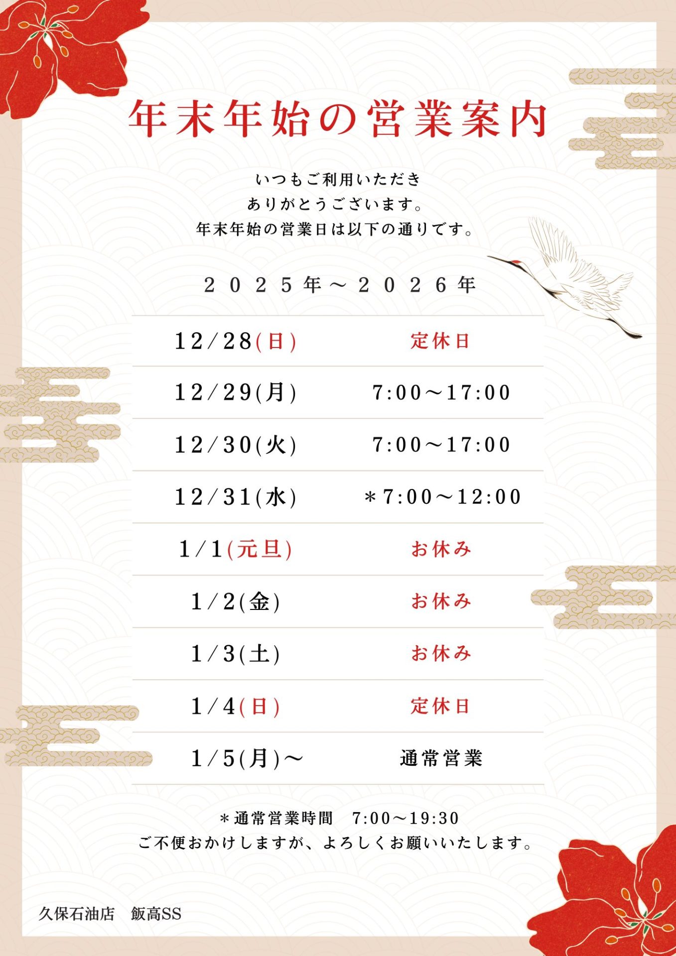 年末年始の営業案内 2025-12-30 最終更新日時 : 2025-12-30 apollohat 年末年始の営業案内お知らせ まもなく年の瀬を迎えますが、みなさまいかがお過ごしでしょうか。 本年も大変お世話になり、心より感謝申し上げます。 誠に勝手ながら12月31日(水)12:00~1月4(日)は臨時休業とさせていただきます。 【年始の営業】 令和7年1月5日(月)からは通常営業とさせていただきます。 ご不便をおかけすると存じますが、ご了承くださいますようお願い申し上げます。